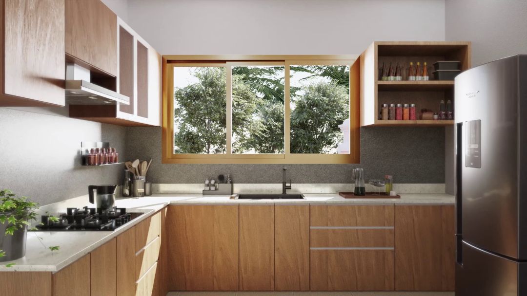 Each kitchen has a quartz worktop with a built-in sink, dishwasher, cooker hob and smoke hood. The cabinets and wall mounted cupboards are modular with built-in washing machine, microwave and refrigerator. Piped gas and hotwater systems are standard.